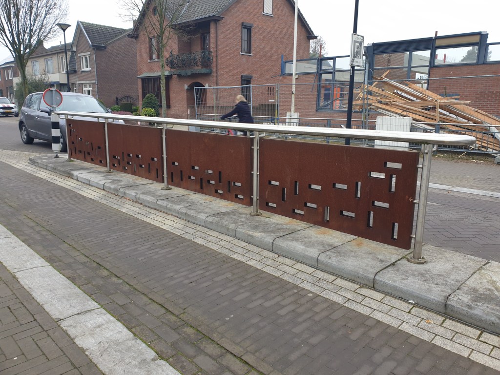 Hier wat elementen uit de gemeente die ik in het ontwerp heb laten terugkomen (zie de strepen op de grond en in het metaal)