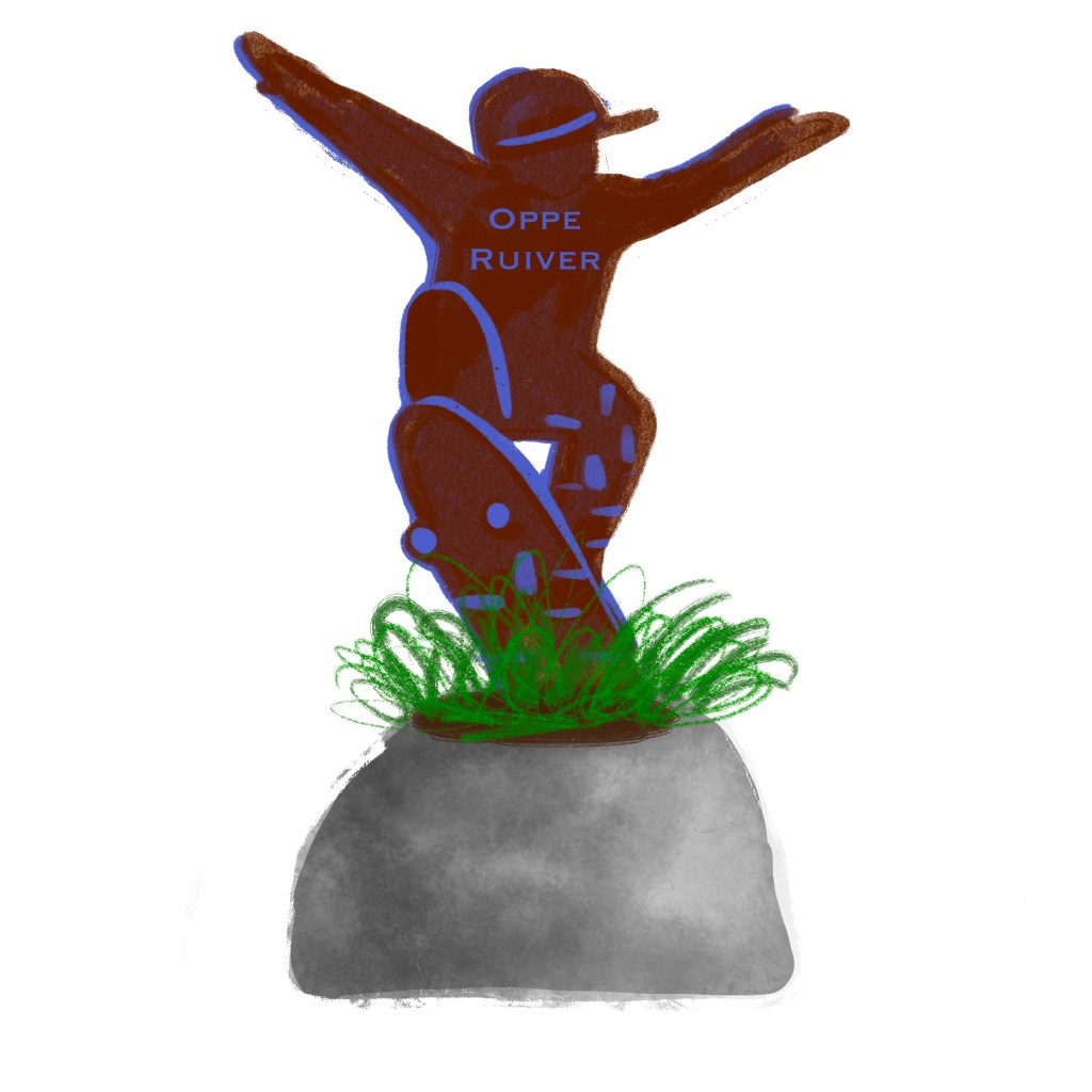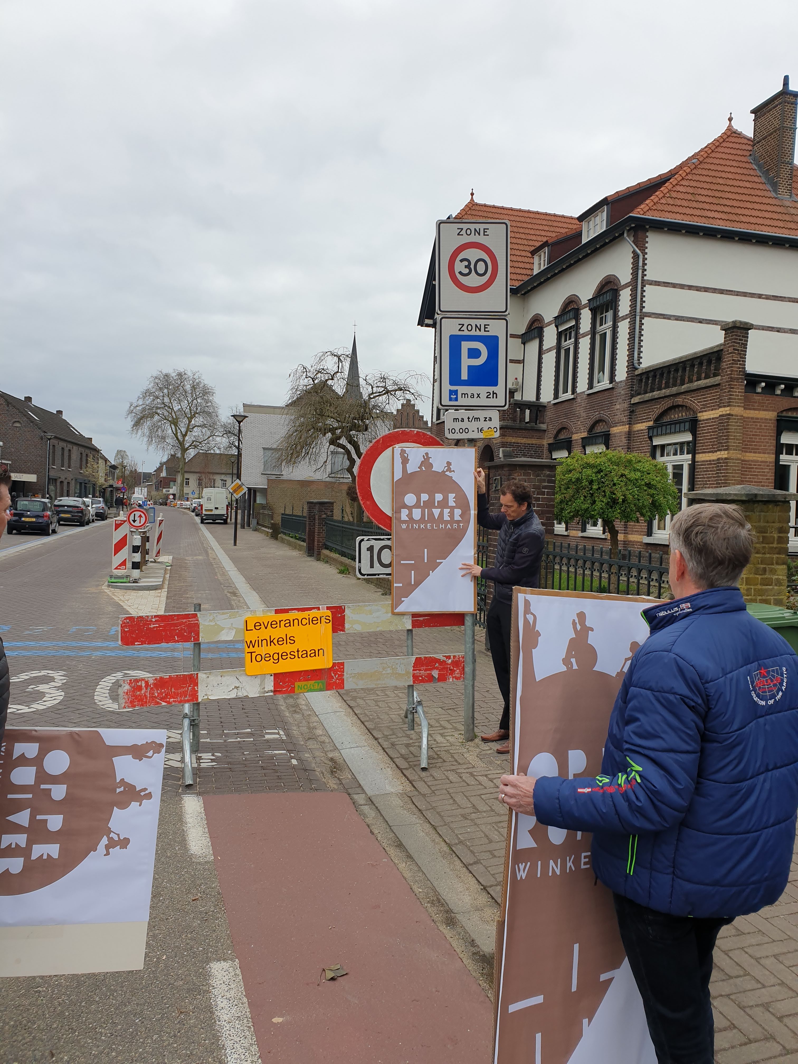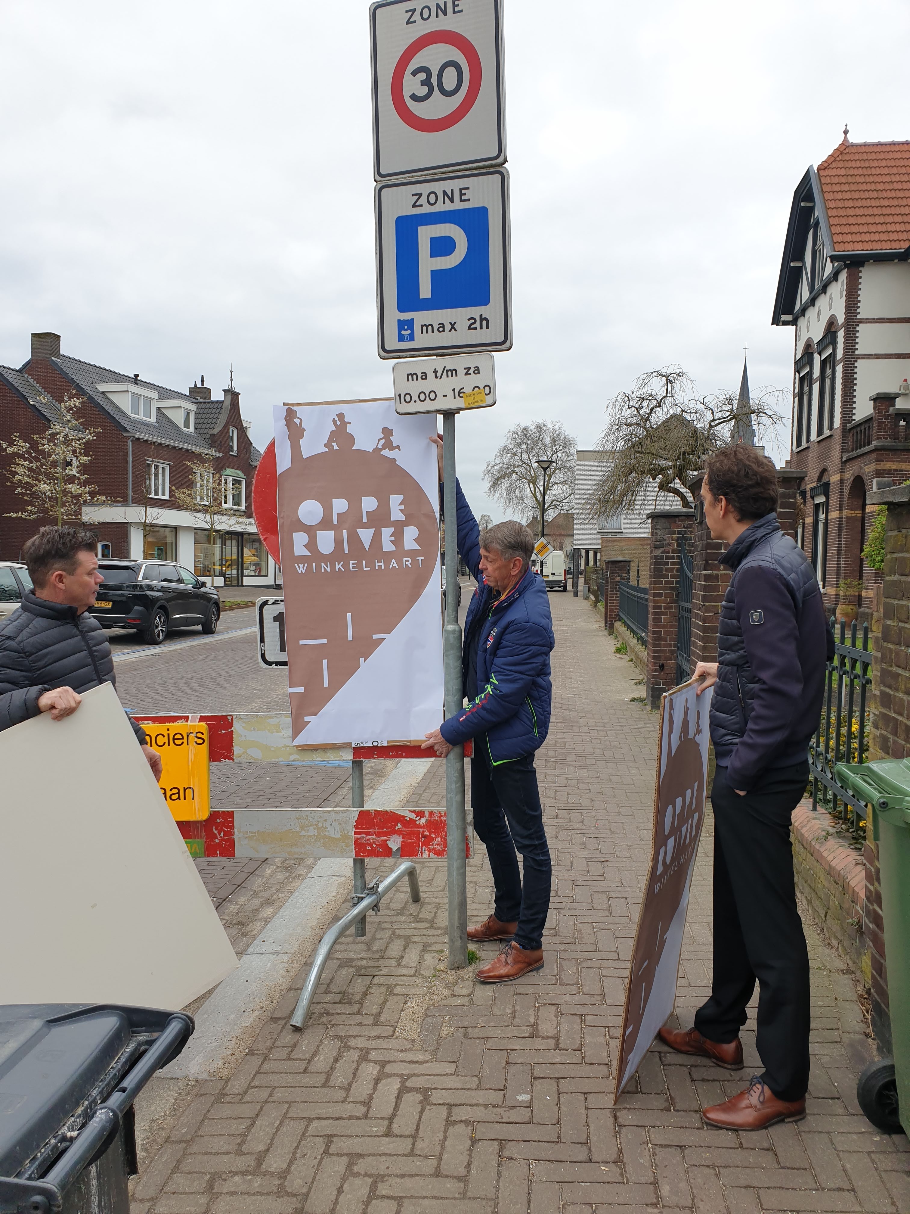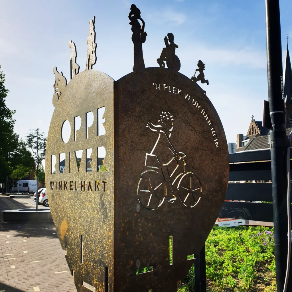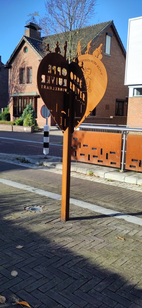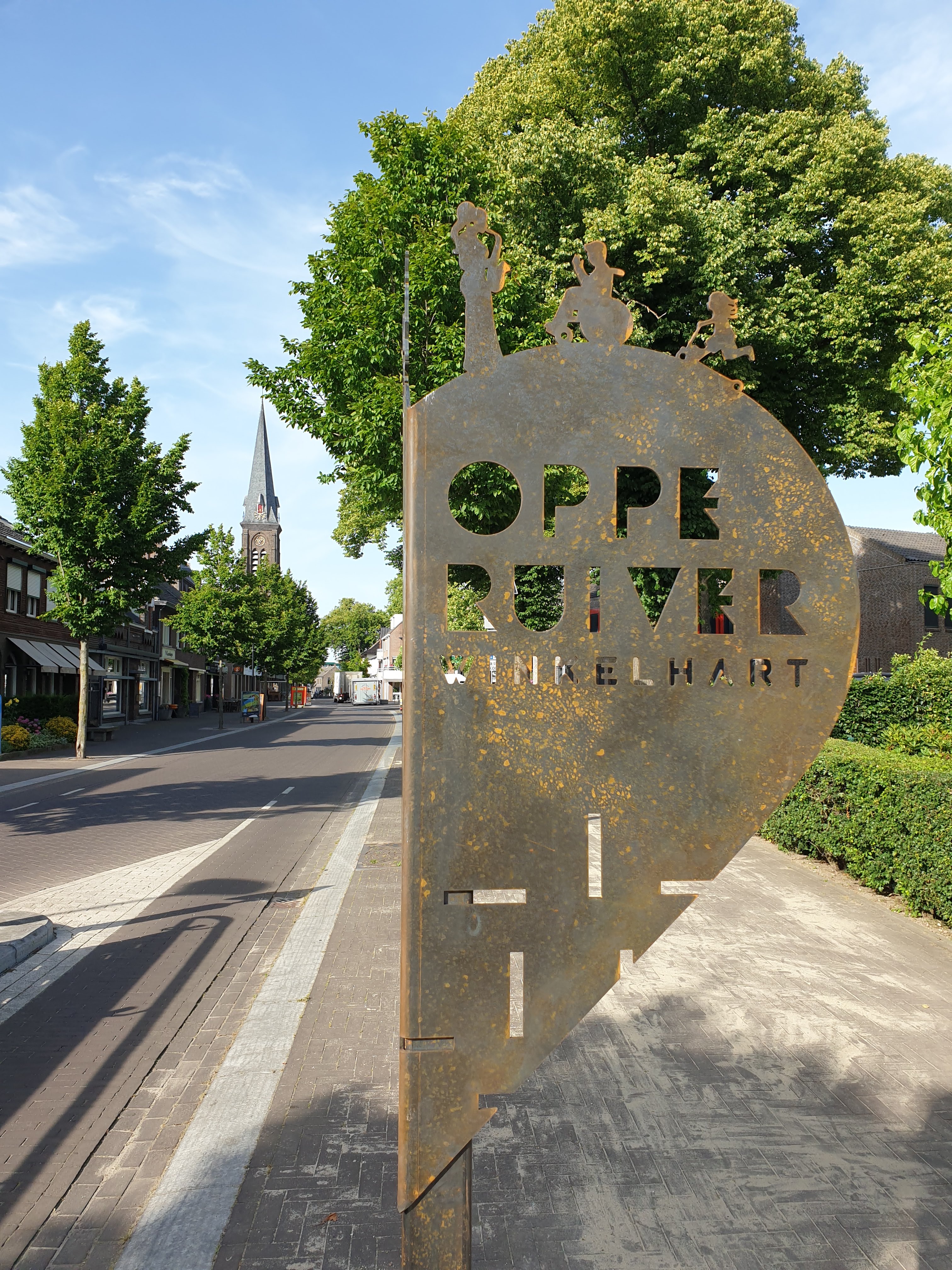 De borden zijn in de vorm van een hart, ze zijn een slag gevouwen waardoor je bij het binnenrijden van het centrum alleen de ene helft ziet met: Oppe Ruiver, winkelhart. Maar als je op de stoep staat kun je de andere helft zien, met een afbeelding en de tekst: ‘n plek veur idderein (Reuvers dialect voor: een plek voor iedereen).