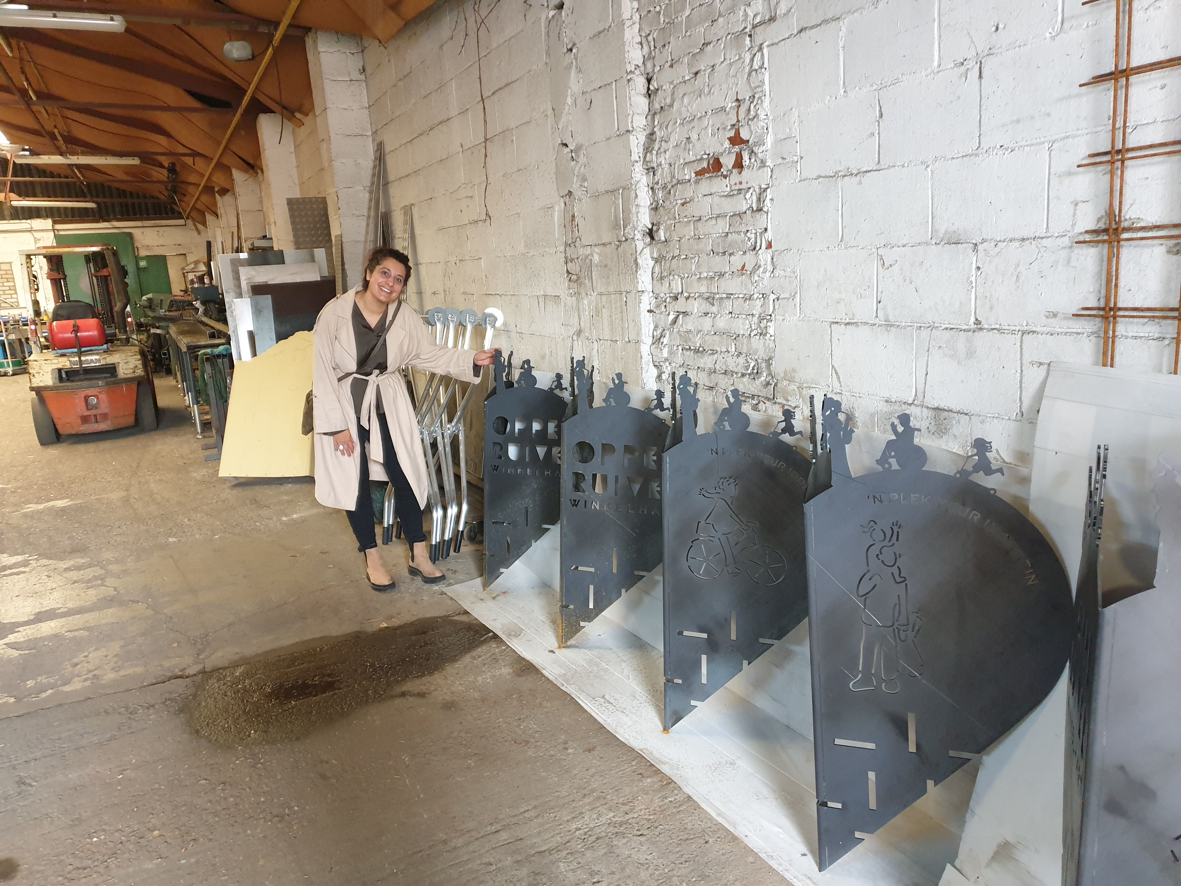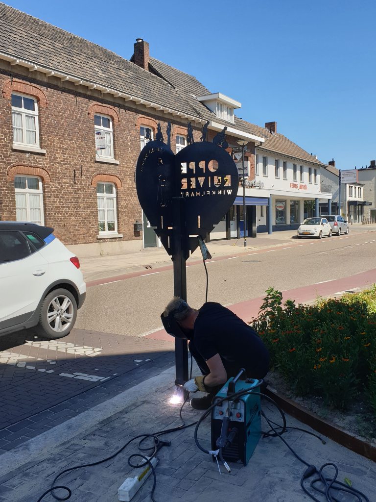 De borden zijn vervaardigd in samenwerking met Lasbedrijf Selders uit Reuver, ze zijn van cortenstaal gemaakt, dit is heel weerbestendig materiaal dat lang meegaat, en krijgt die bekende mooie bruinoranje roestkleur na verloop van tijd. In de rest van de gemeente zie je trouwens ook beelden uit cortenstaal zo sluit het weer mooi aan bij het geheel.