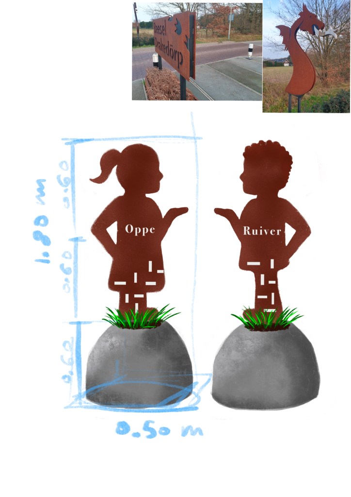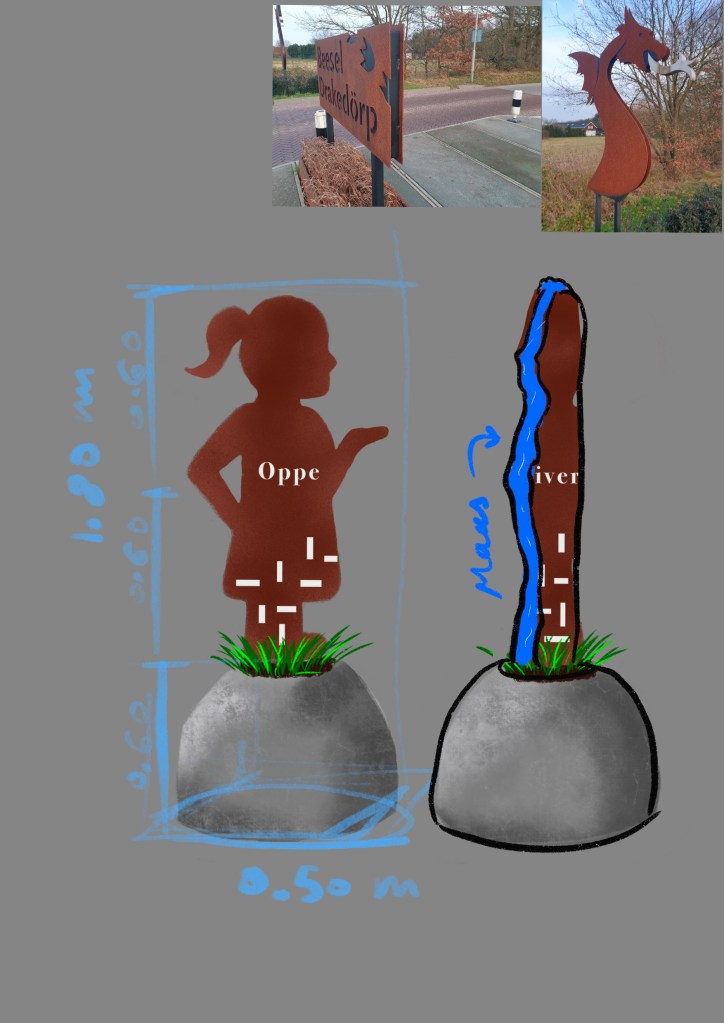 Gemeente Beesel nodigde ontwerpers uit vanuit de Gemeente om met een voorstel te komen voor de nieuwe kompoorten van Reuver, ik heb de andere ideeën niet gezien, maar ben natuurlijk erg blij dat de keuze op mij is gevallen