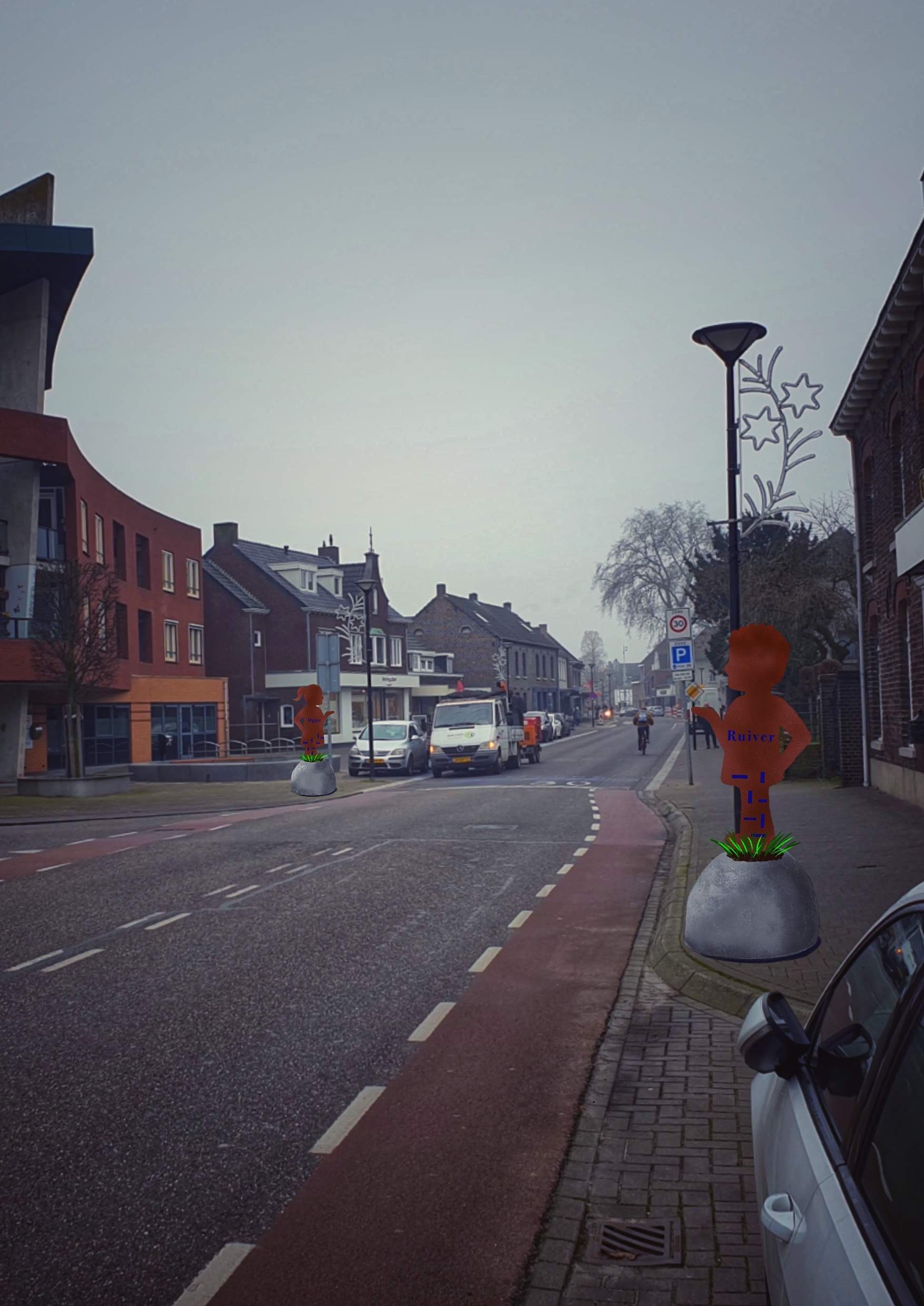 Dit transformeerde in verschillende soorten figuren, die de Reuverse weggebruiker zouden symboliseren. De slogan ‘een plek voor iedereen’ begon langzaam op te komen.